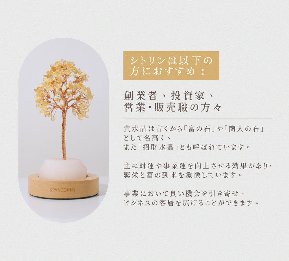 ◦ クリスタルツリー材質 | 天然シトリン、銅線
