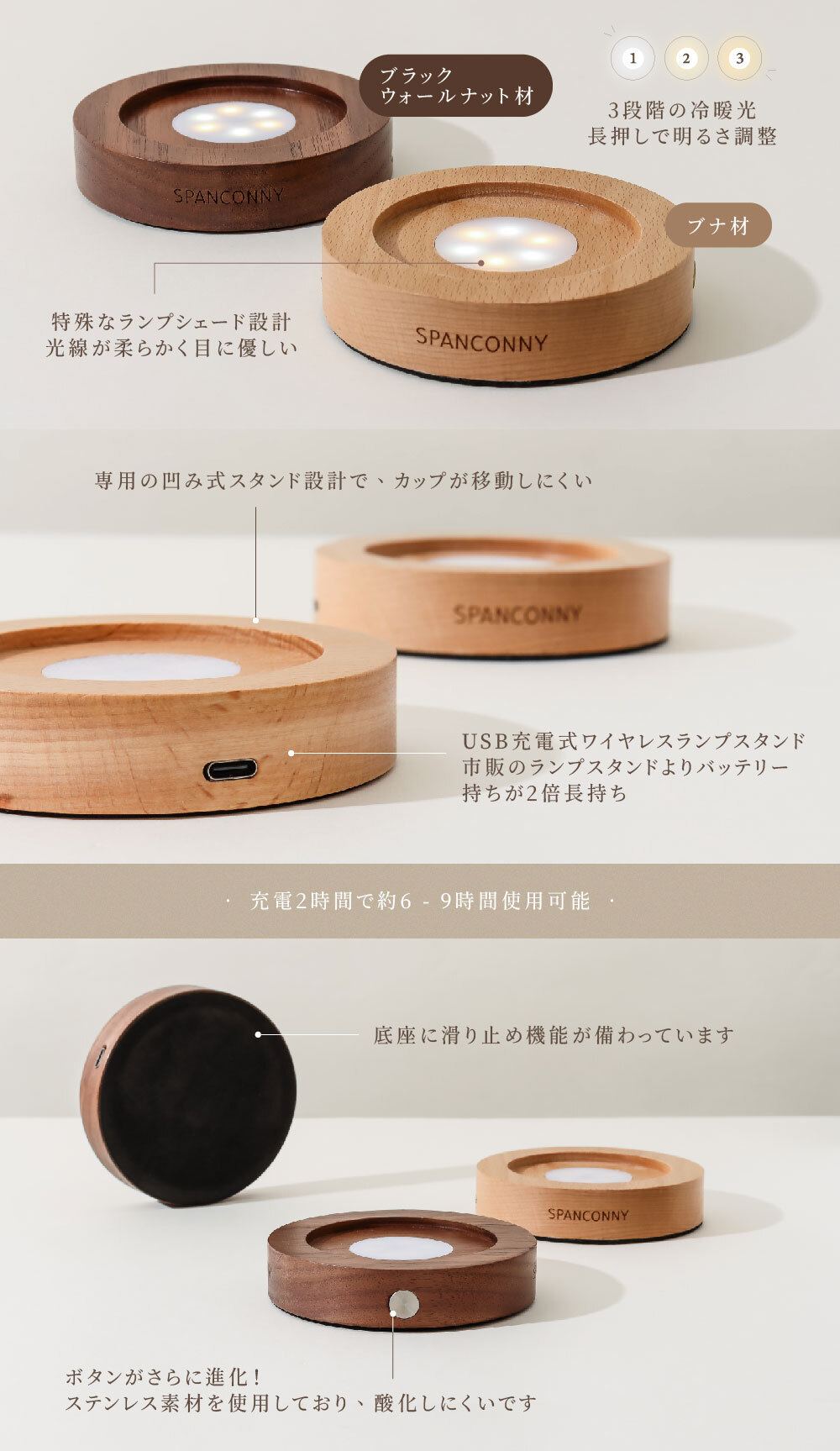 ランプ台座の種類lブナ材、ブラックウォールナット材