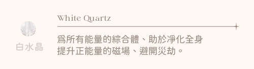 ◦ 白水晶 | 淨化消磁, 增加正能量, 專注力