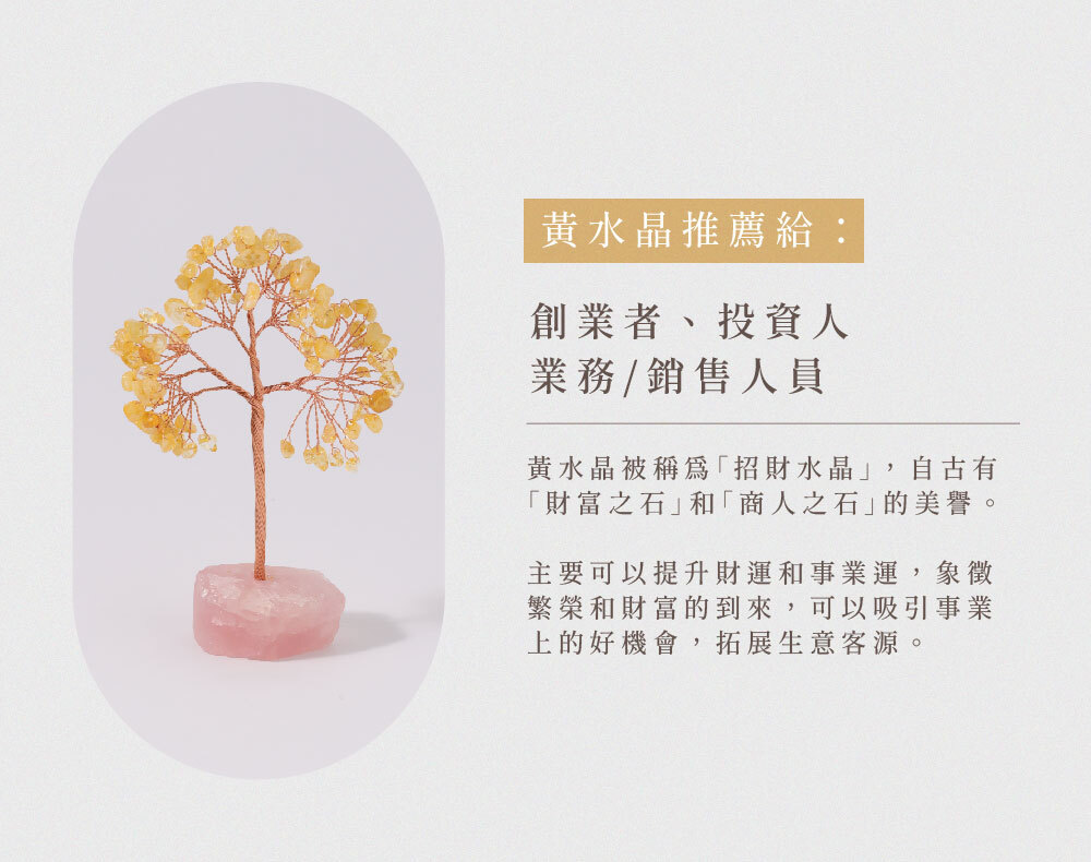 ◦ 水晶樹材質 | 天然黃水晶、紅銅線