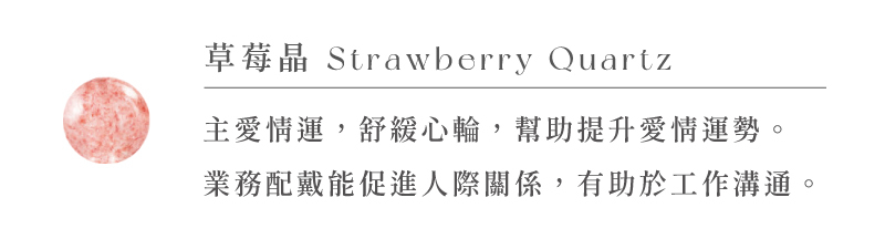 ◦ 海藍寶, 淡水珍珠, 白水晶, 薰衣草紫水晶, 葡萄石, 黃塔晶, 太陽石, 草莓晶