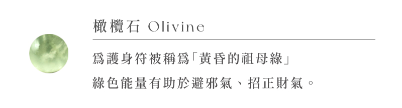 ◦ 橄欖石 | 舒眠, 舒緩情緒, 清除負能量