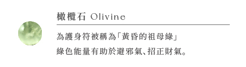 ◦ 橄欖石 | 舒眠, 舒緩情緒, 清除負能量
