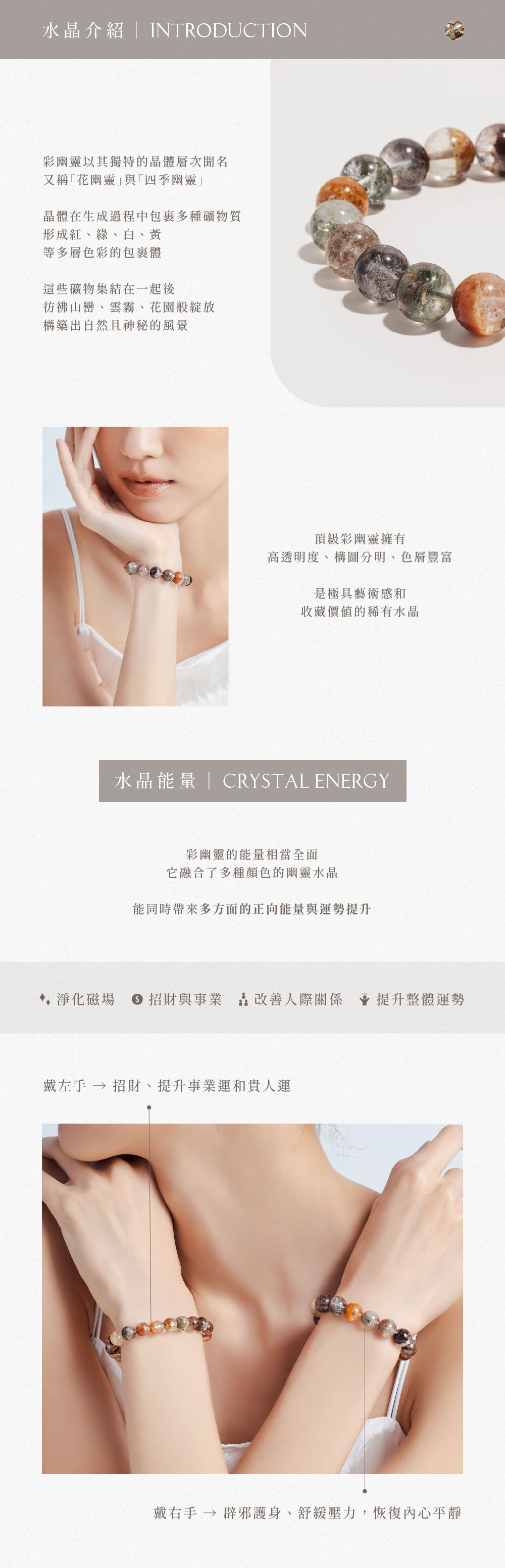◦ 採用天然水晶,晶體內部有冰裂、棉絮、礦缺等狀態,皆為天然水晶的獨有特色,並非瑕疵。