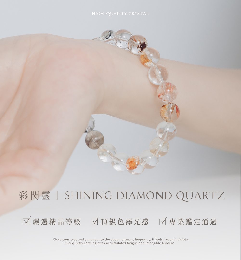 ◦ 採用天然水晶,晶體內部有冰裂、棉絮、礦缺等狀態,皆為天然水晶的獨有特色,並非瑕疵。