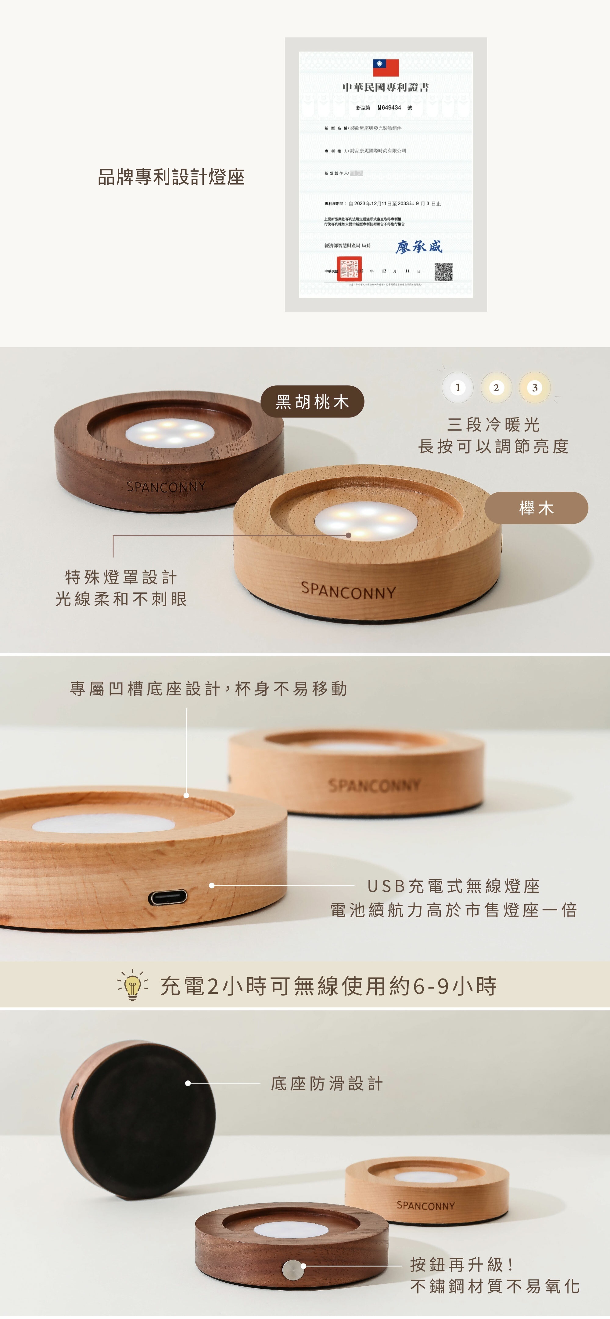 ◦ 燈座為天然木頭製作,若有黑點屬天然紋理,並非瑕疵。