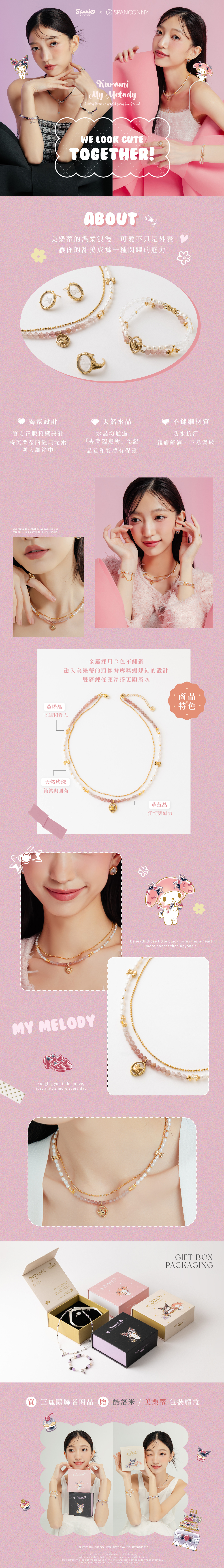 美樂蒂聯名 | 草莓晶 黃塔晶 淡水珍珠 | 三麗鷗美樂蒂水晶項鍊