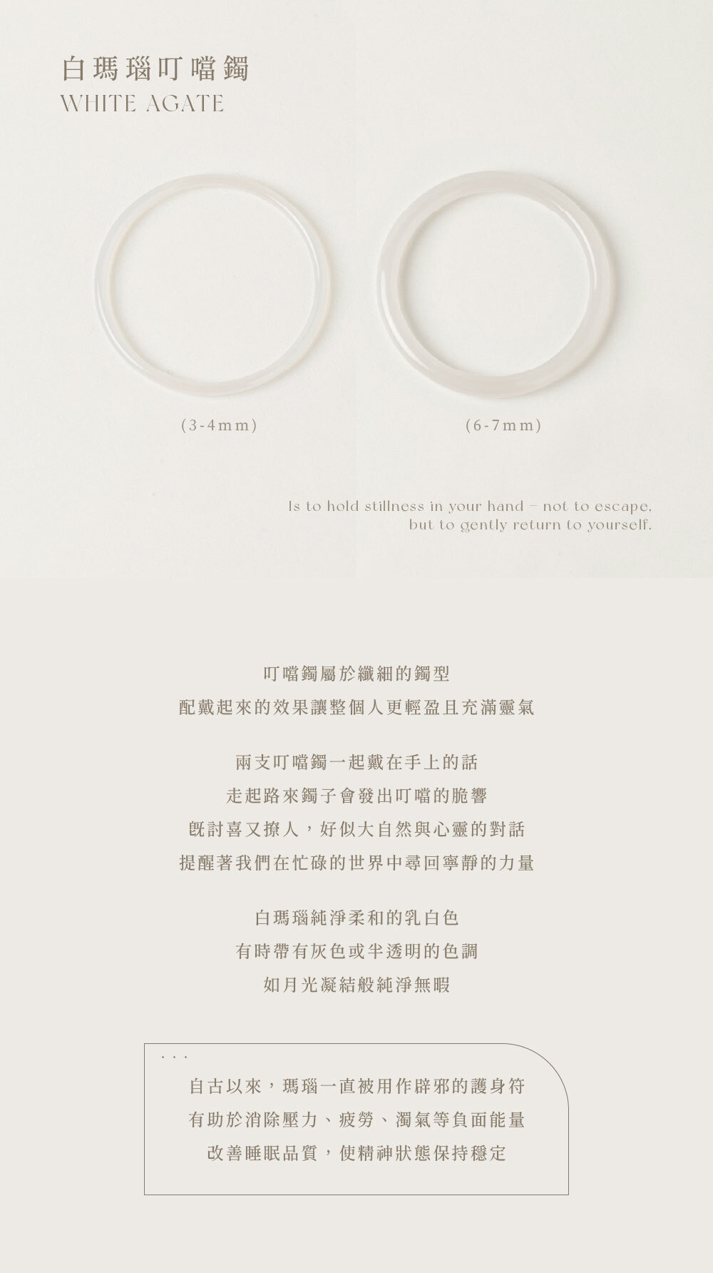 ◦ 白瑪瑙 | 避邪, 舒緩壓力, 增加免疫力
